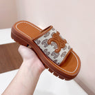 LEA TRIOMPHE PLATFORM SLIDES WOMEN VEGETABLE TANNED CALFSKIN BROWN/WHITE