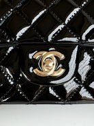 24c mini flap bag 20cm with top handle black patent calfskin