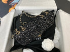 25C Flap Bag 20cm Black Polka Dot Silver Sequin Calfskin