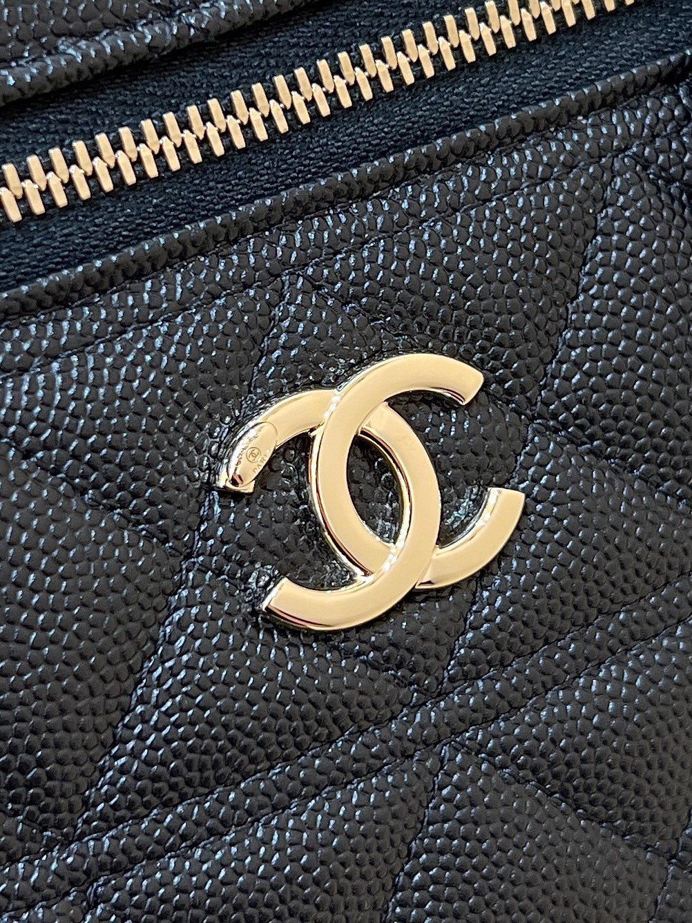 25C Vanity 19cm Top Handle Black Grained Calfskin