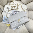 CC 25P Medium Flap Bag 25cm Top Handle Grey Calfskin Gold Hardware