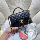 CC 25P Mini Flap Bag 20cm Top Handle Black Calfskin Gold Hardware