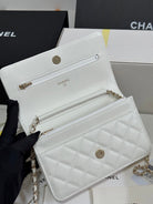 CC 25P Wallet On Chain 19cm White Cowhide Heart Rhinestone 243592