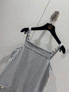 CC 25 Striped Suspender Skirt Gray White Cotton