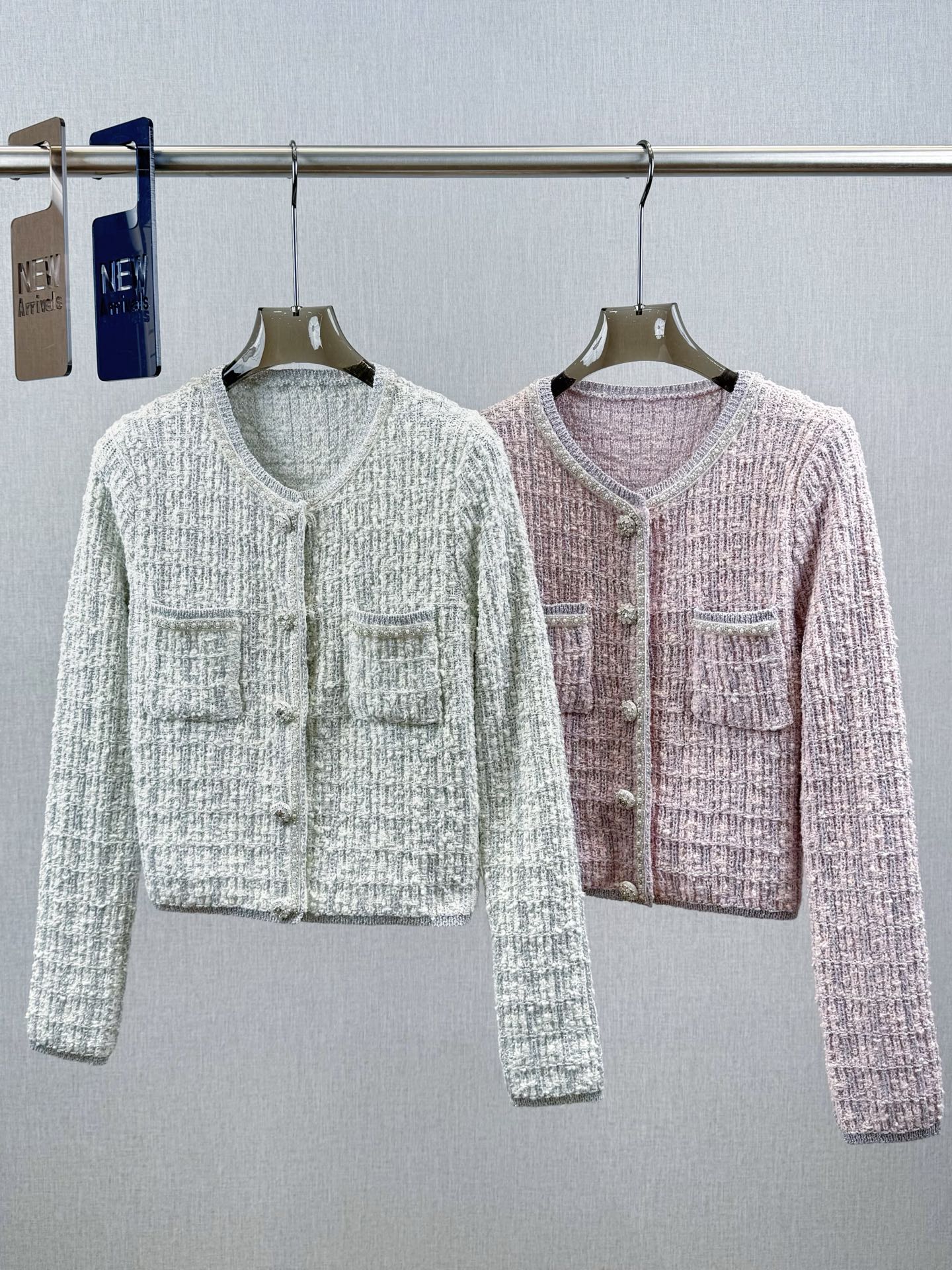 CC Tweed Beaded Coat Pink White Cotton Acrylic 251307