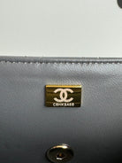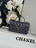 24c mini flap bag 20cm with top handle grey patent calfskin