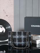 24K Flap Bag 25.5cm Blue Black Stripe Tweed