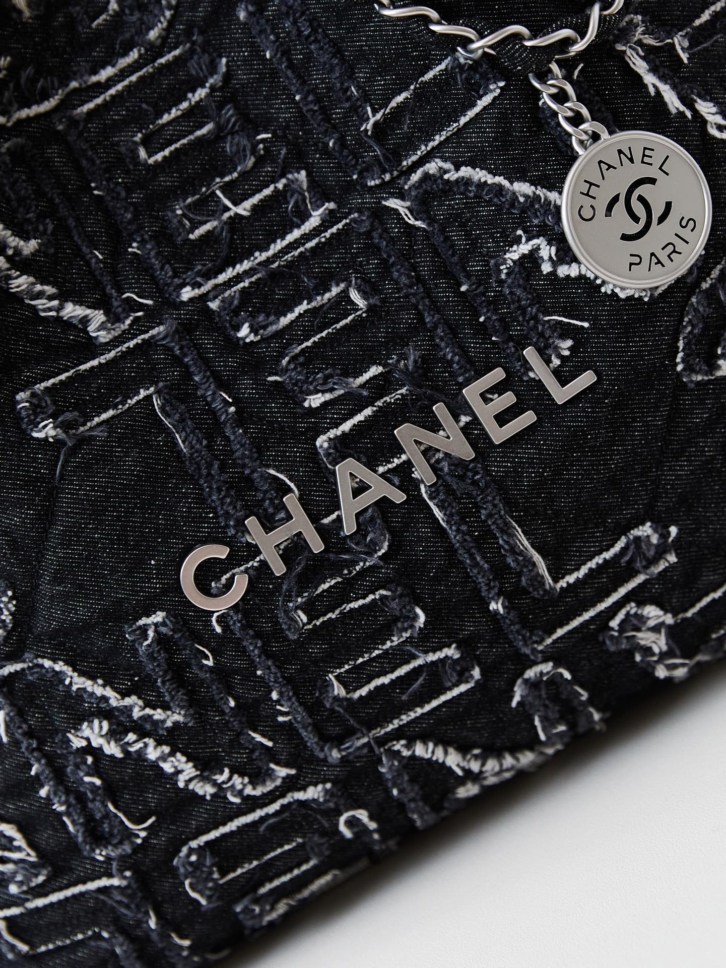 24a cc 22 hobo bag black denim silver hardware