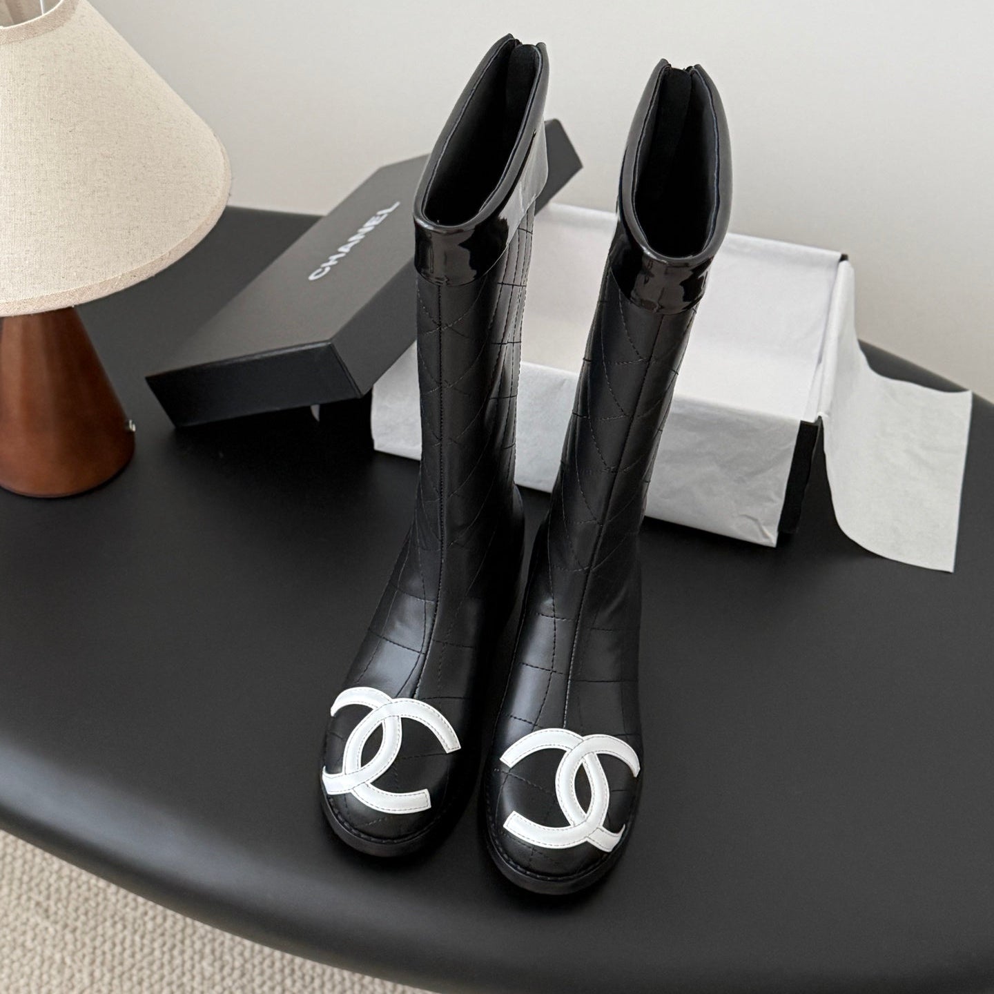 CC 2025 Vintage Cambon Mid-Calf Boots Black White Cowhide 550637