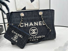 CC Deauville Tweed Bag 33x24x14.5cm Black Leather Gold Hardware 27