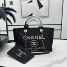 CC Deauville Tweed Bag 33x26x15.5cm Black Leather Gold Hardware 26