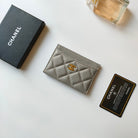 CC CARD HOLDER 11.2 GRAY GRAINED CALFSKIN GOLD ICON