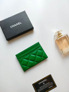 CC CARD HOLDER 11.2 GREEN CALFSKIN GOLD ICON