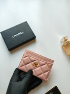 CC CARD HOLDER 11.2 PALE PINK GRAINED CALFSKIN GOLD ICON