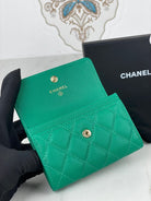 CC FLAP CARD HOLDER 11 EMERALD GRAINED CALFSKIN GOLD ICON