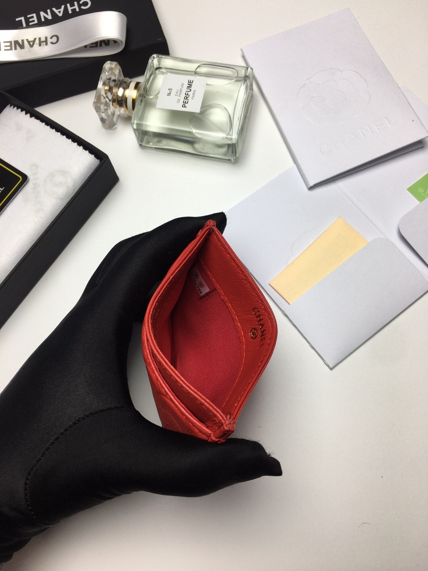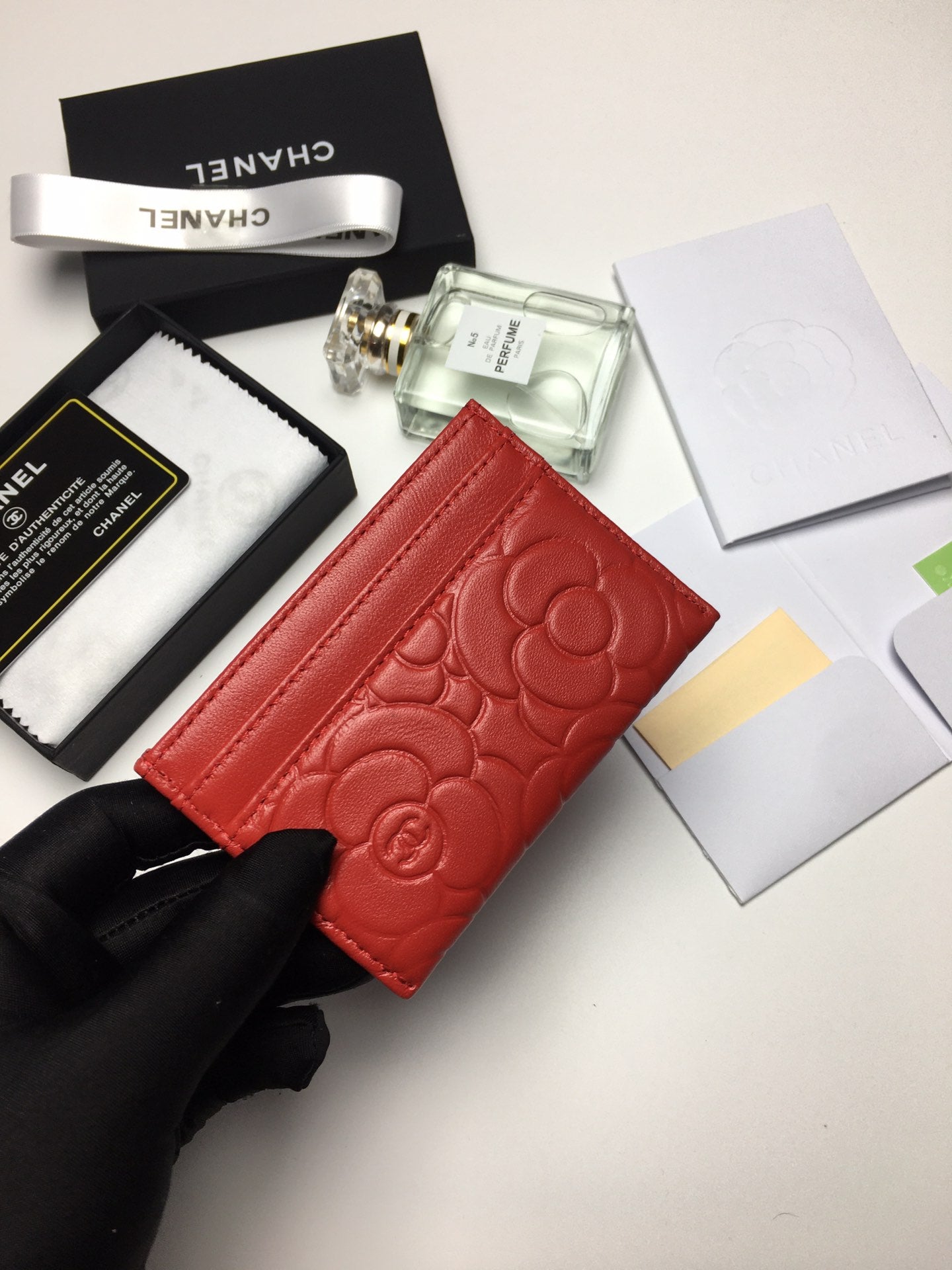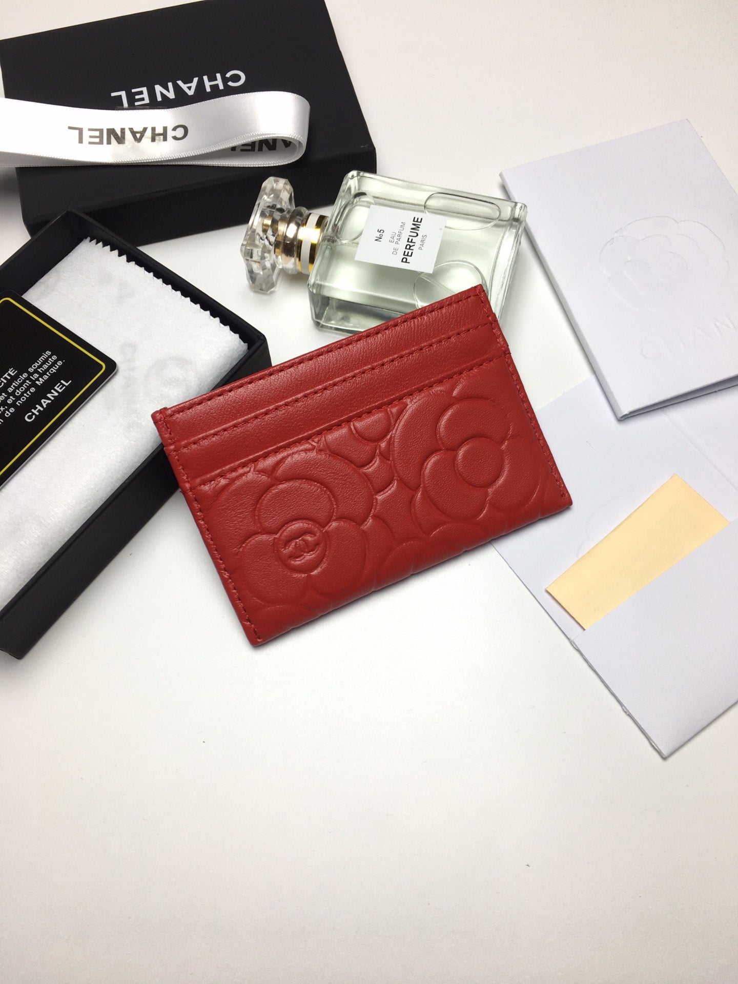CC FLORAL CARD HOLDER 11.2 RED CALFSKIN SILVER ICON