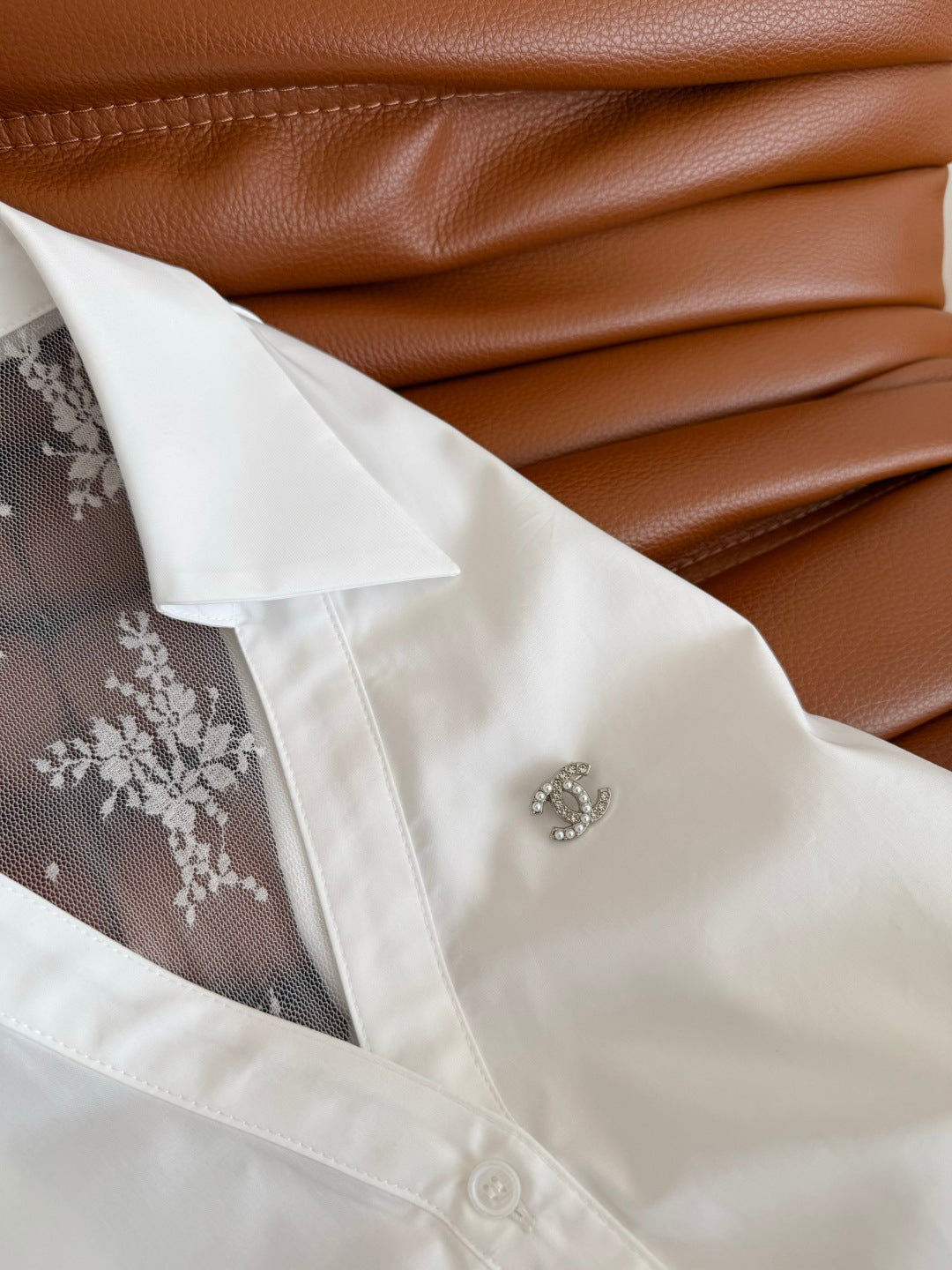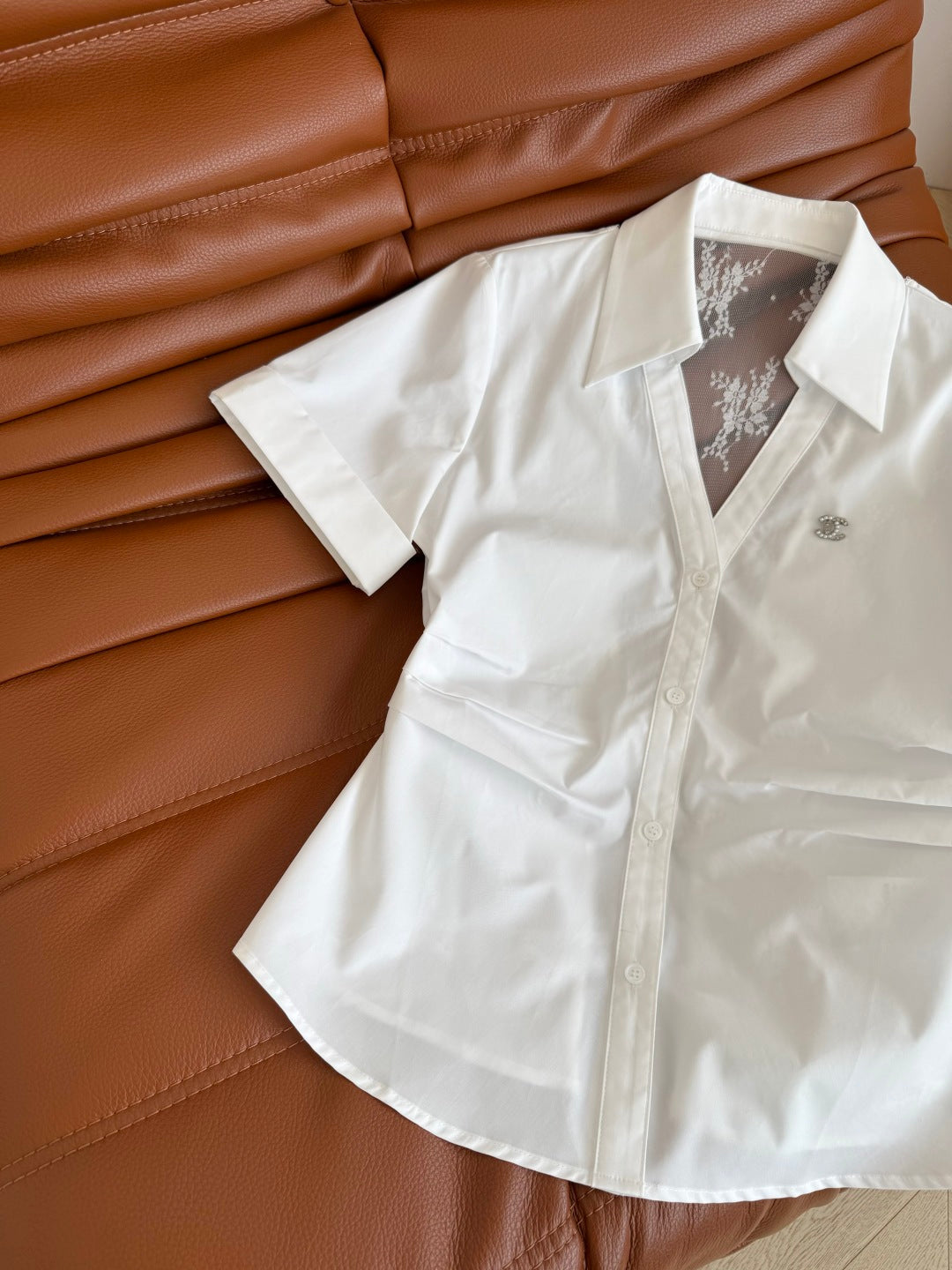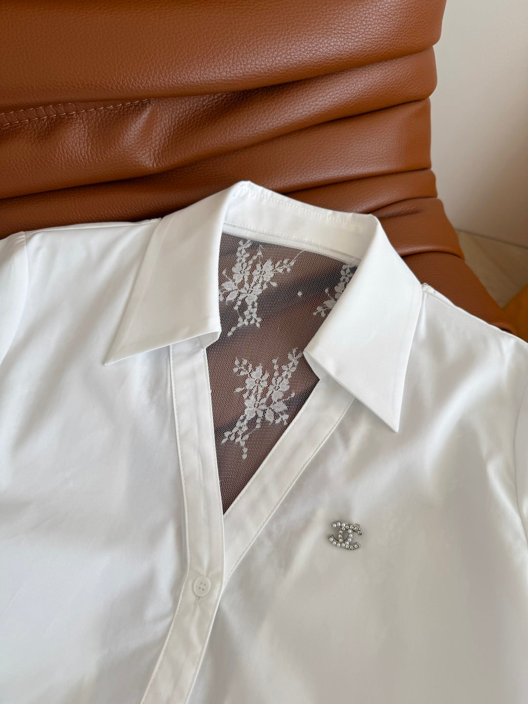 CC 25 Lace Backless Shirt White Cotton