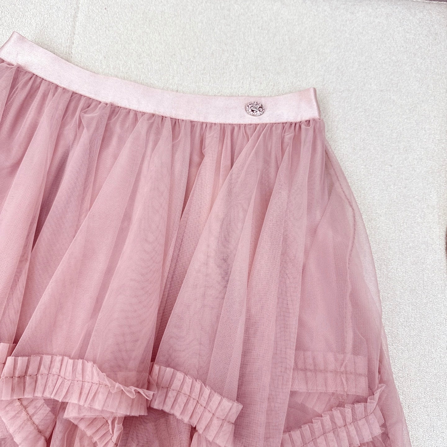 CC 25 Mesh Long Skirt Pink Polyester Fiber