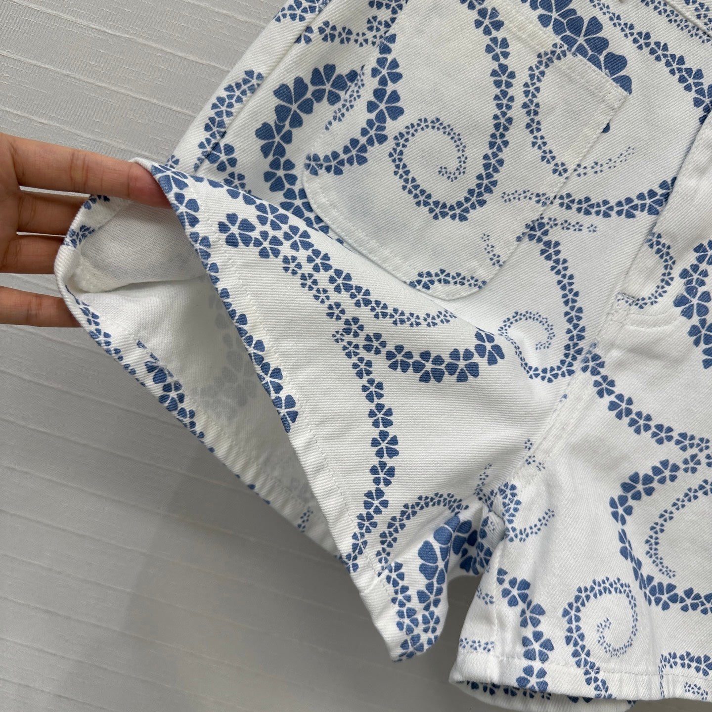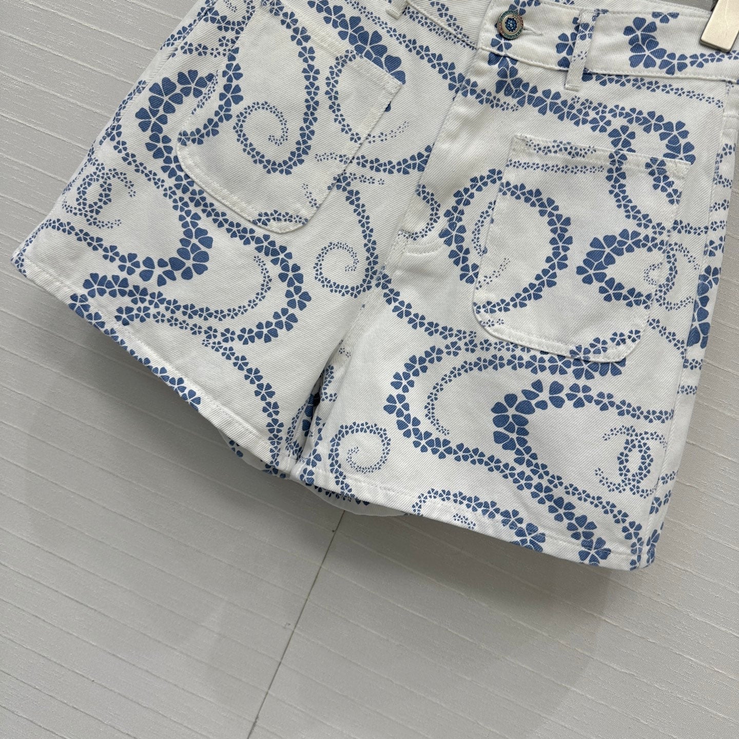 CC 25 Printed Denim Short Blue White Cotton