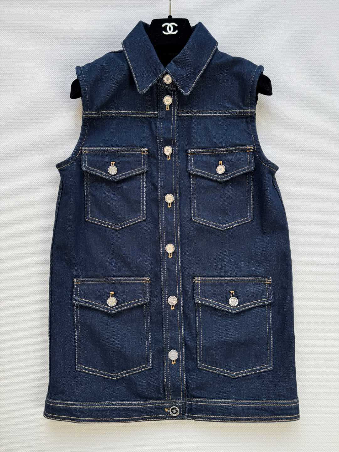 CC 25 Vest Jacket Blue Denim Fabric