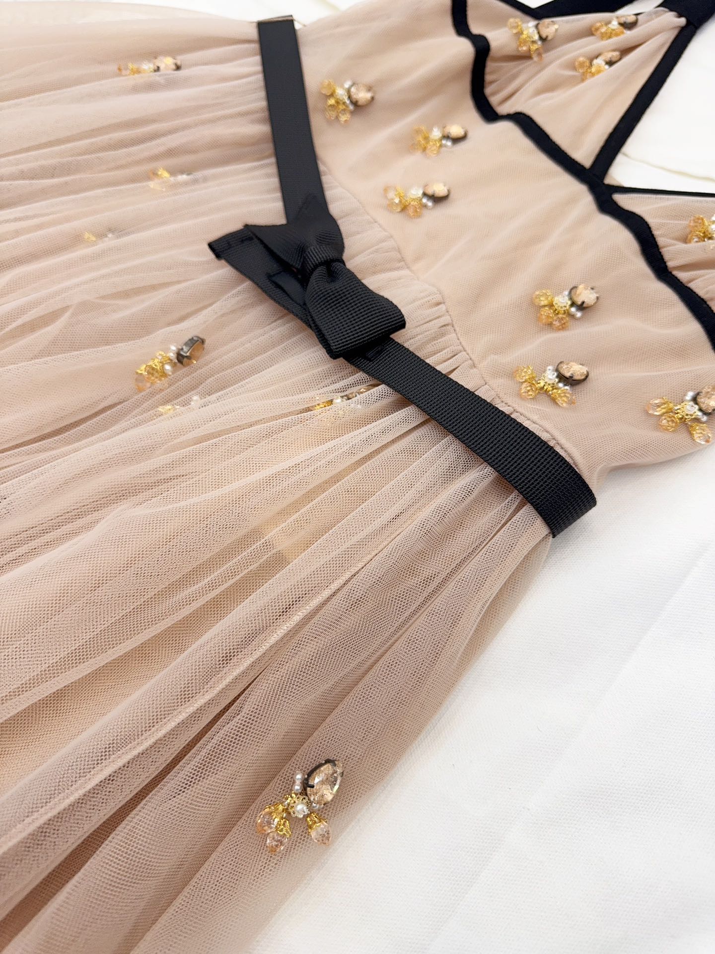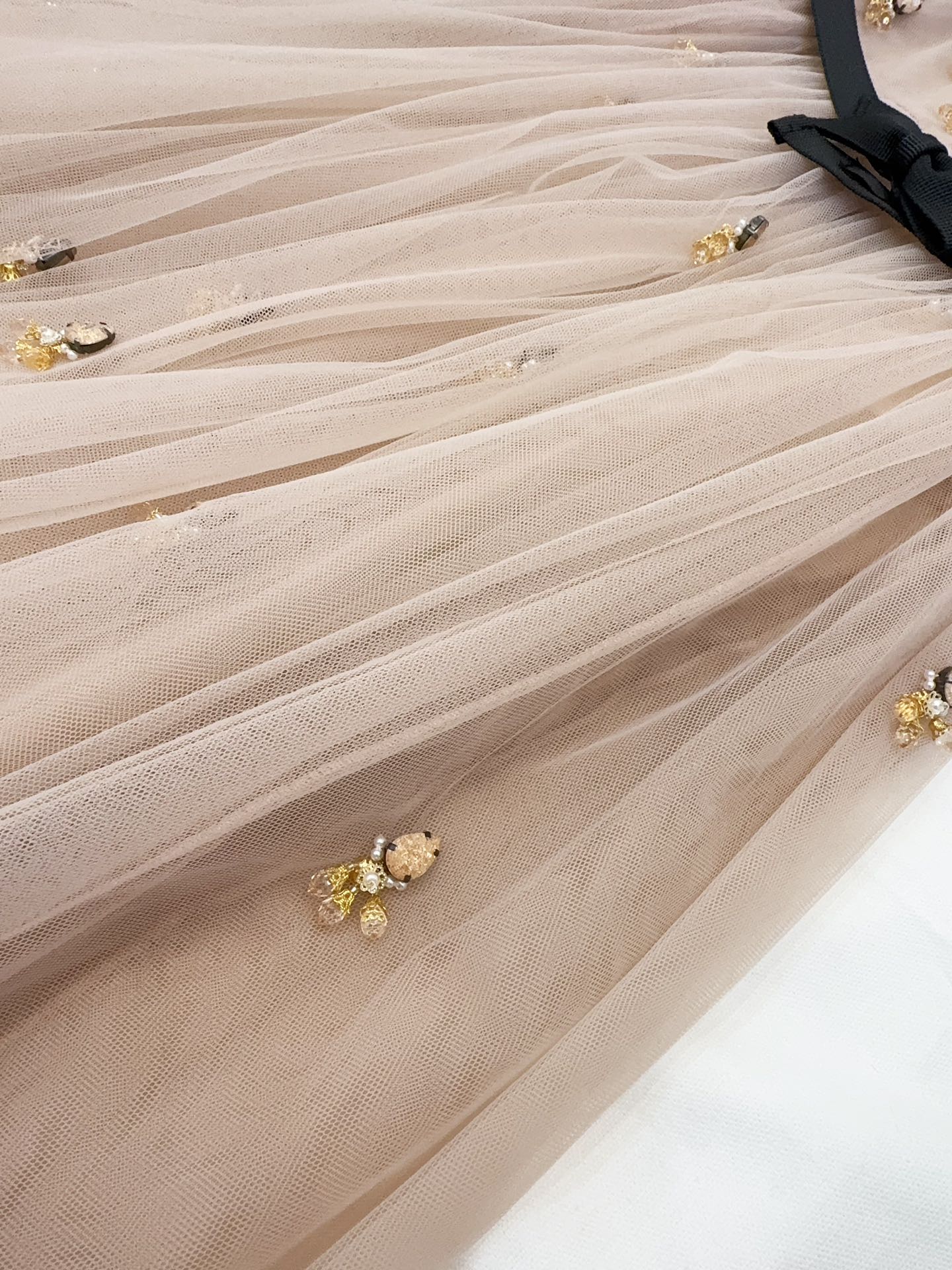 CD 2025 Beaded Dress Gray-pink Mesh Silk