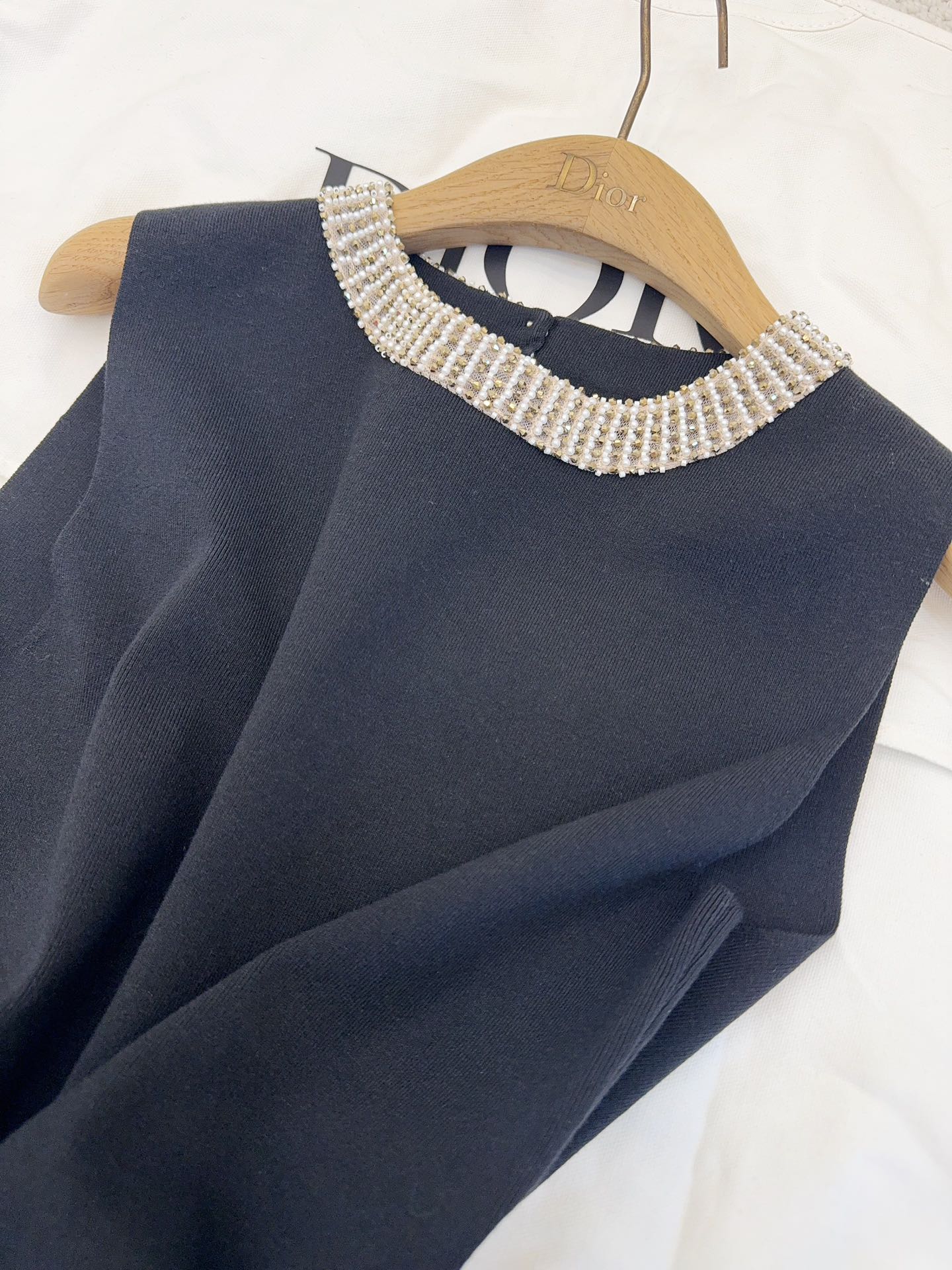 CD 25 Beaded Knitted Dress Blue Tencel Cotton and Silk