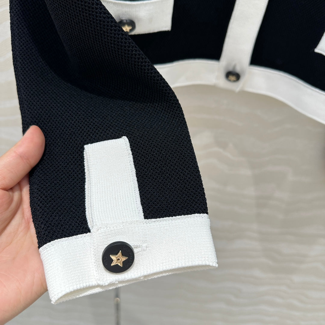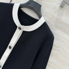 CD Round Neck Cardigan Jacket Black Wool Cotton
