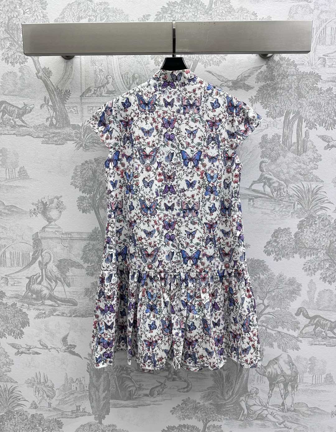 CD Short Dress White Cotton Muslin with Multicolor Motif