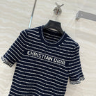 CD Striped knitted Top Navy Blue Cotton