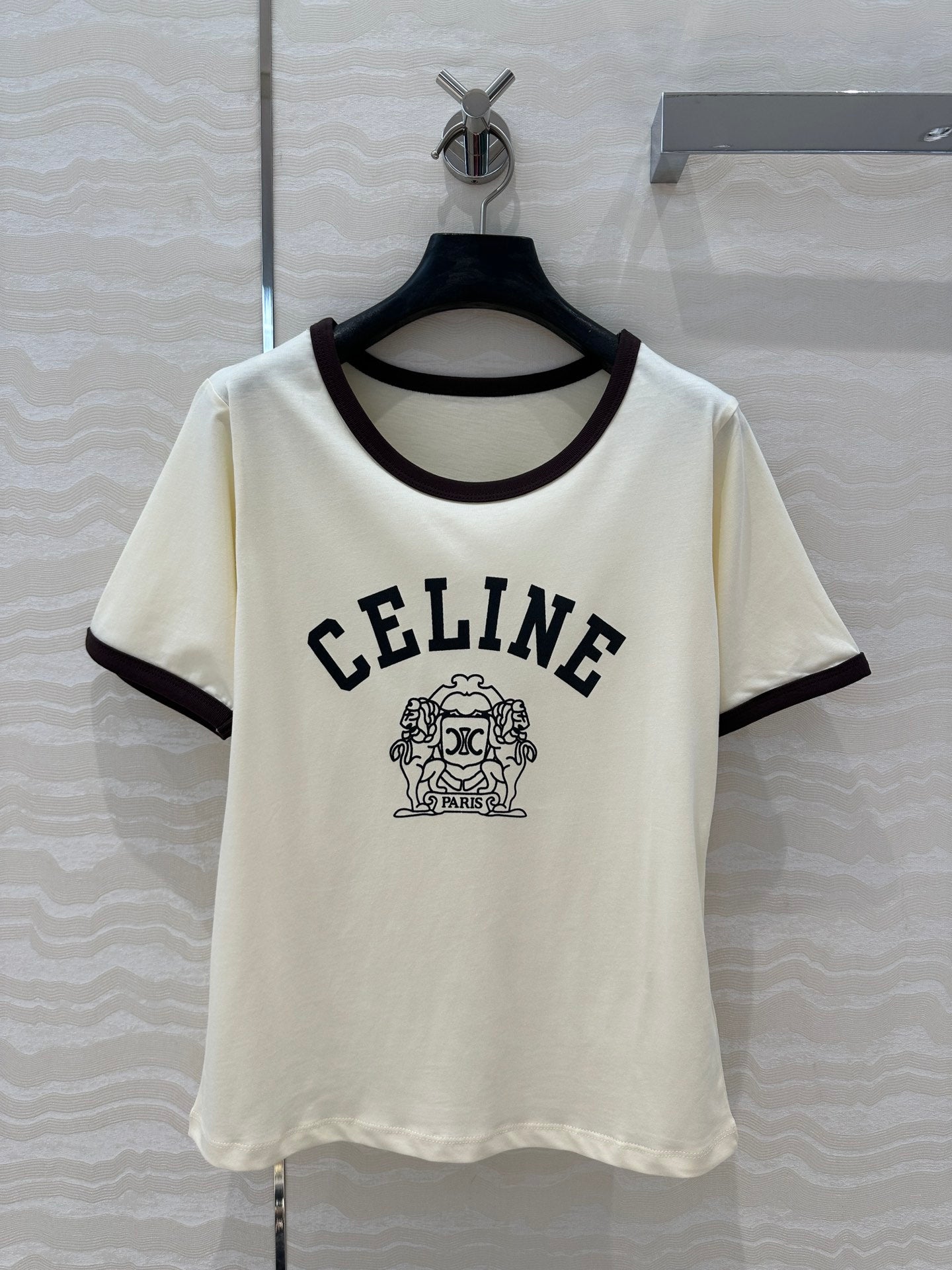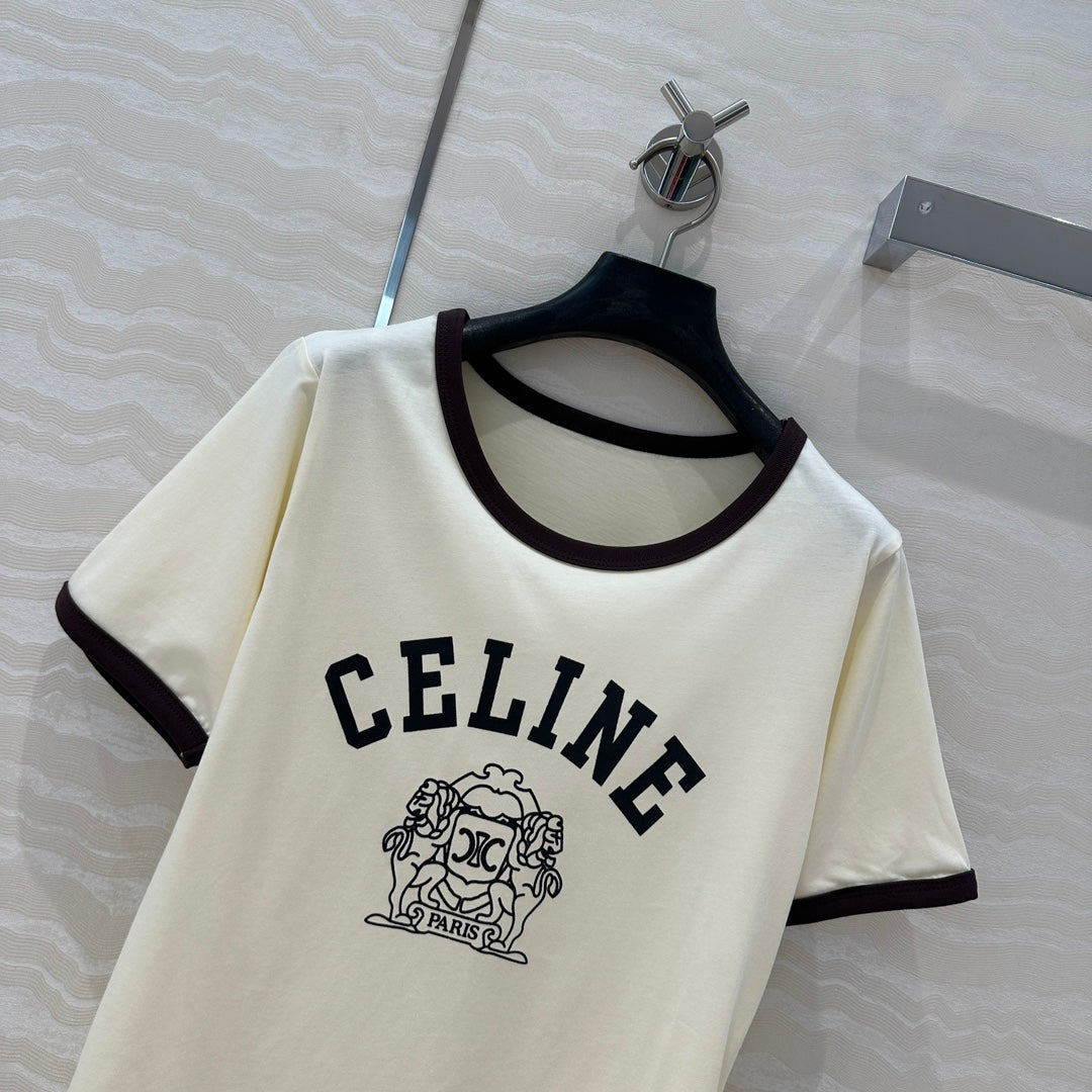 Celine 25 Arc de Triomphe Letter Short Sleeve T-shirt Off-white mix Black Cotton