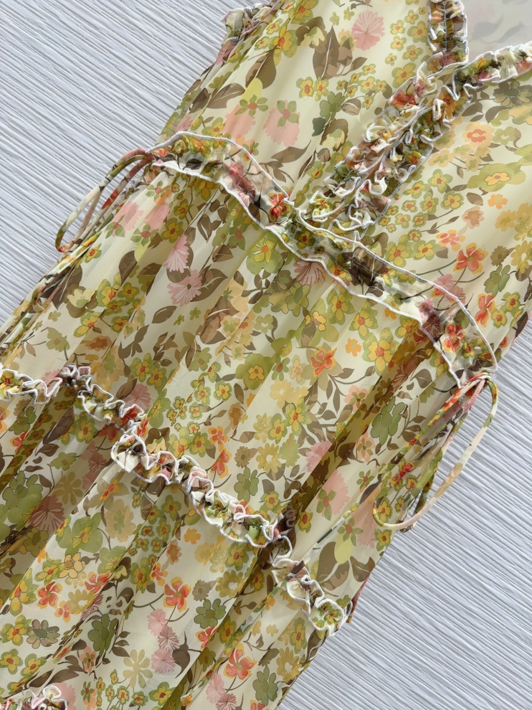 Celine 25 Floral Sleeveless Dress Green mix colors Polyester
