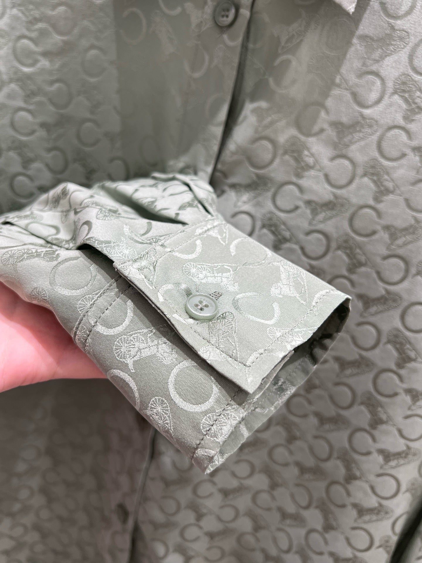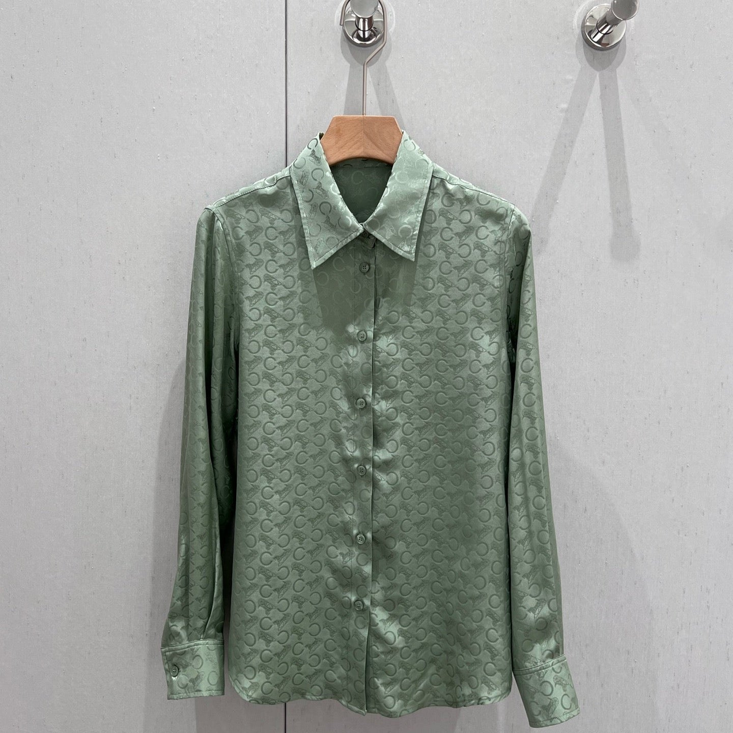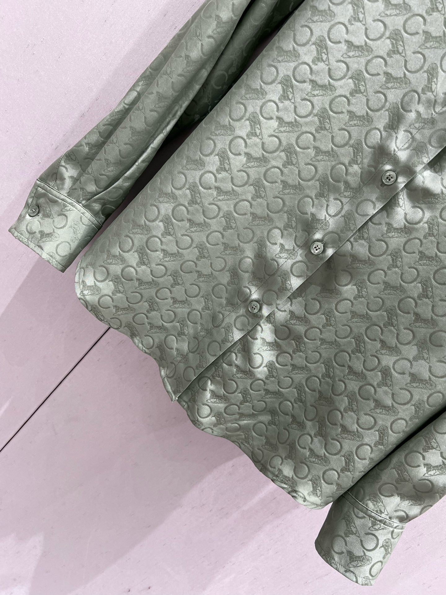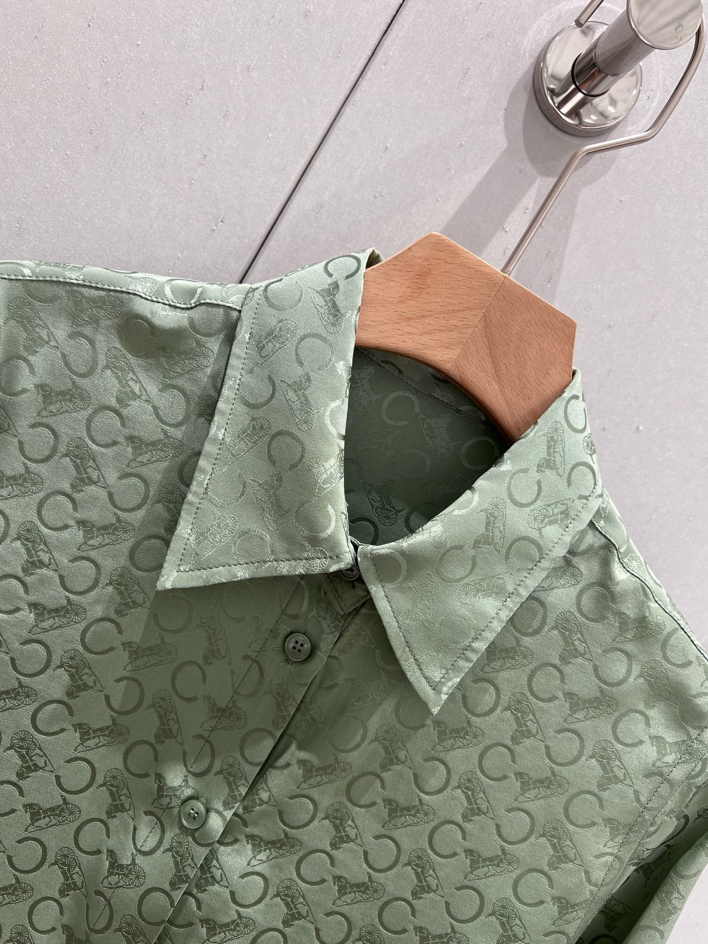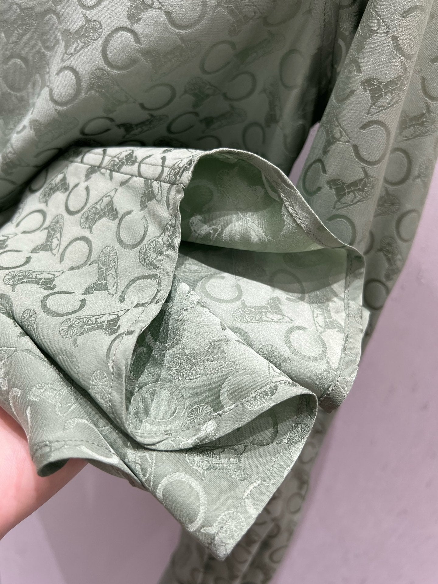 Celine 25 Monogram T-shirt Green Jacquard Silk 210347