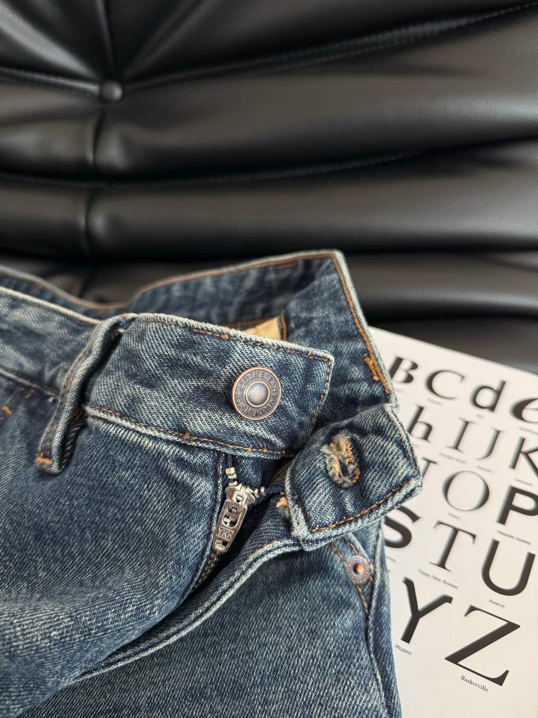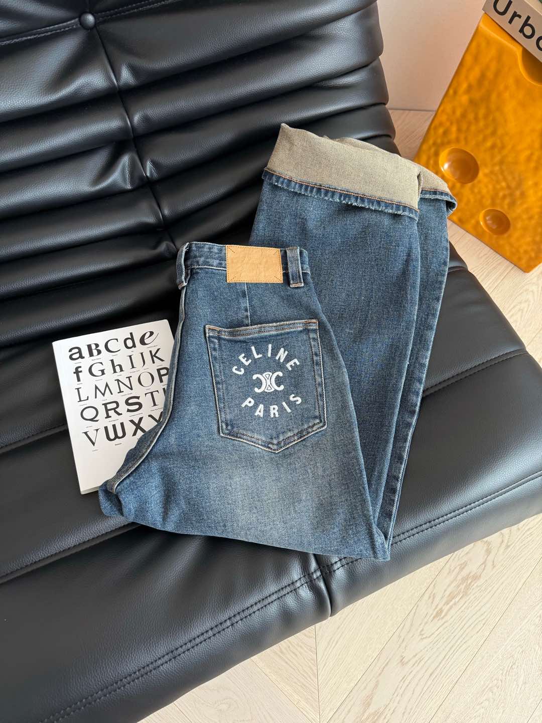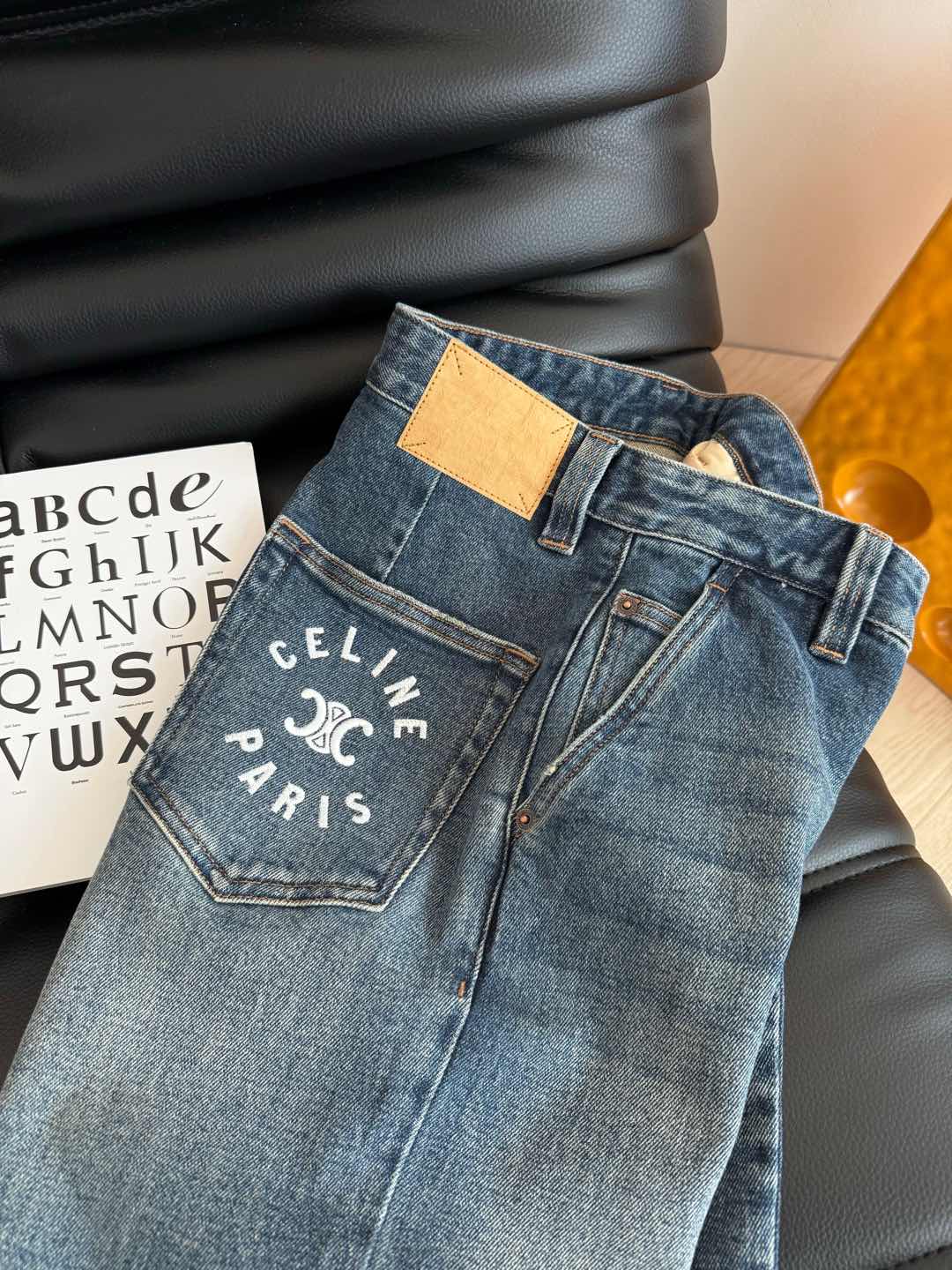Celine 25 Pattern Embroidered Straight Jeans Blue Cotton