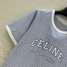 Celine 25 Striped Letter Short-sleeved T-shirt Blue White Cotton