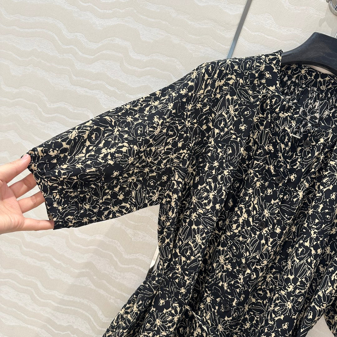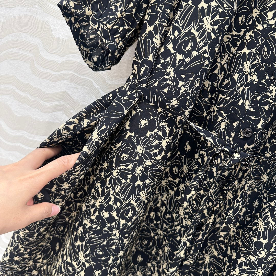 Celine Dress Black mix Beige Silk Viscose