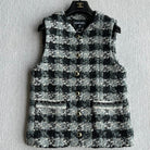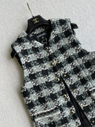 Chanel 2025 Plaid Tweed Vest Jacket Black Wool Polyester 325379