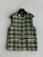 Chanel 2025 Plaid Tweed Vest Jacket Green Wool Polyester 325377