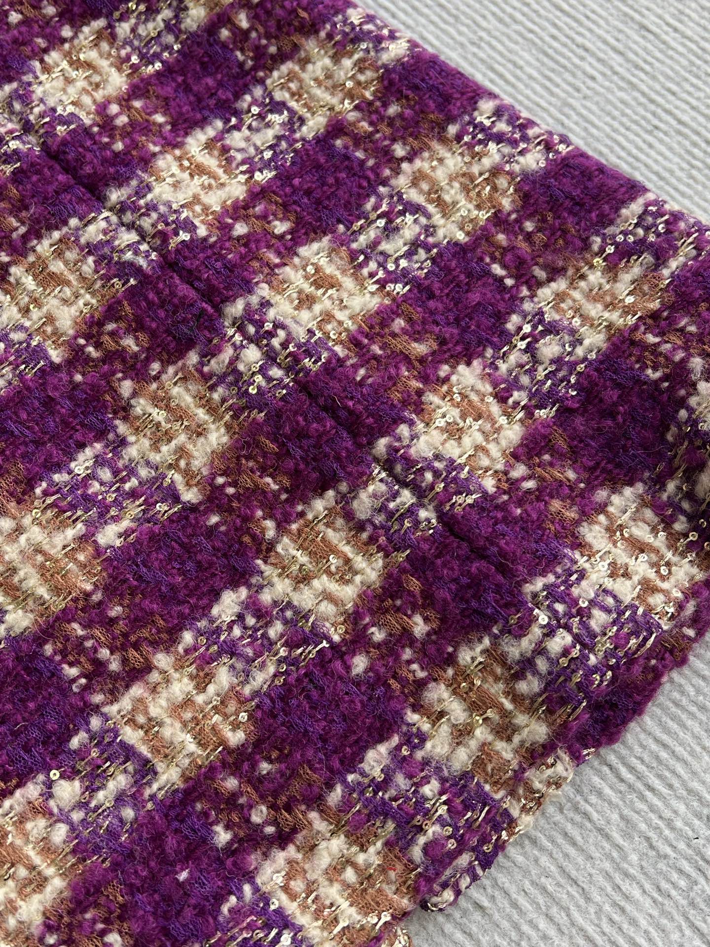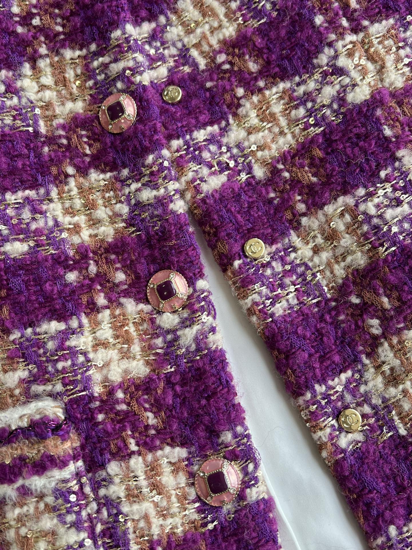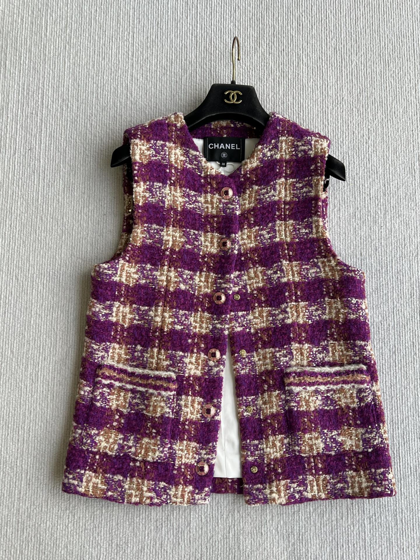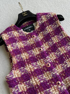 Chanel 2025 Plaid Tweed Vest Jacket Puprle Wool Polyester 325378