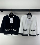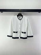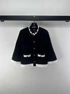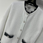 Chanel 2025 Round Neck Lace Cardigan Black White Wool 325690