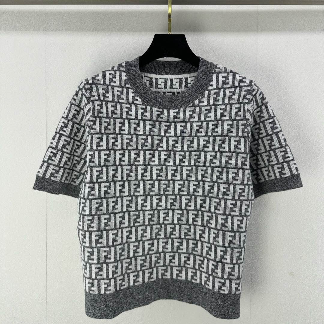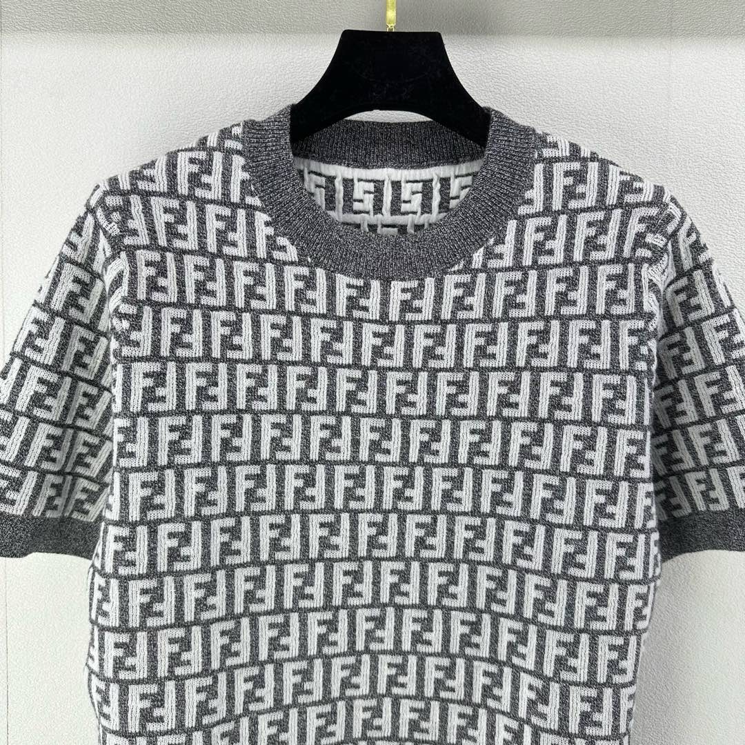 Fendi 25 Knitted Round Neck Short Sleeves Gray Wool F155