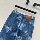 Fendi Flower Denim Straight Pants Blue Cotton