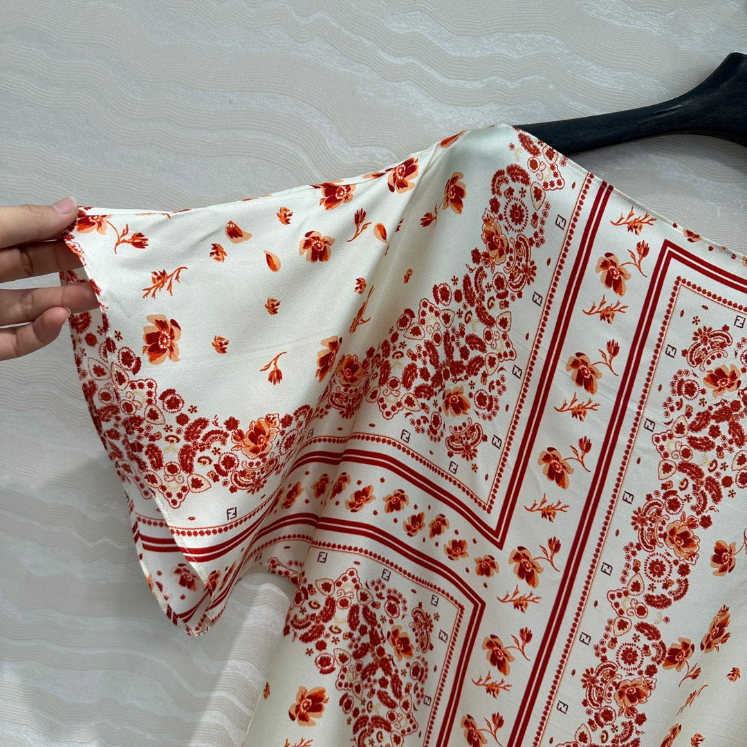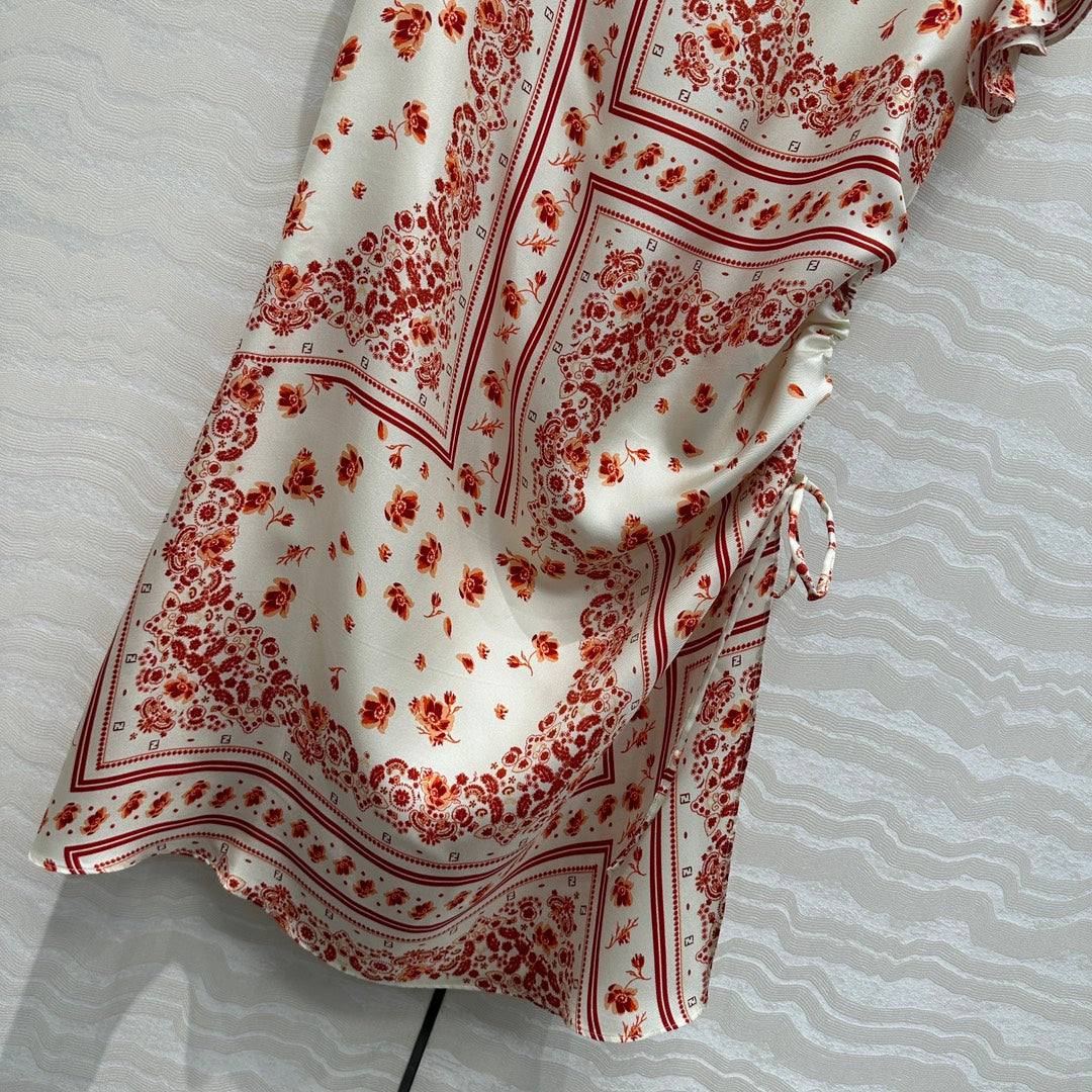 Fendi Flower Dress Red Silk