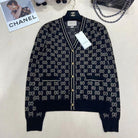 GG V-Neck Long Sleeve Cardigan Black Beige Monogram