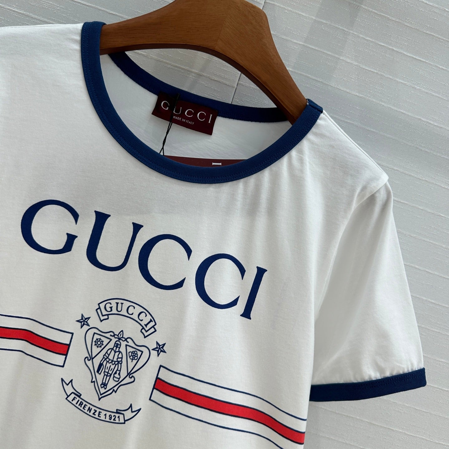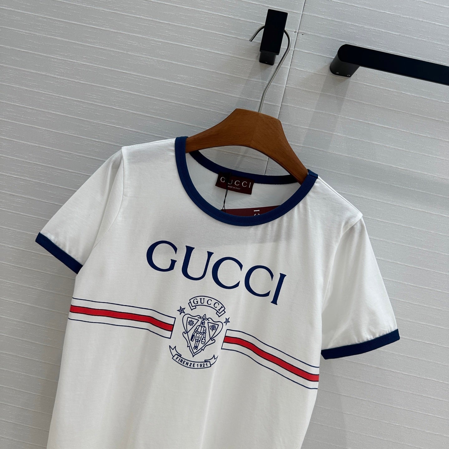 Gucci 25 Blue Letter Short-sleeved T-shirt White Cotton
