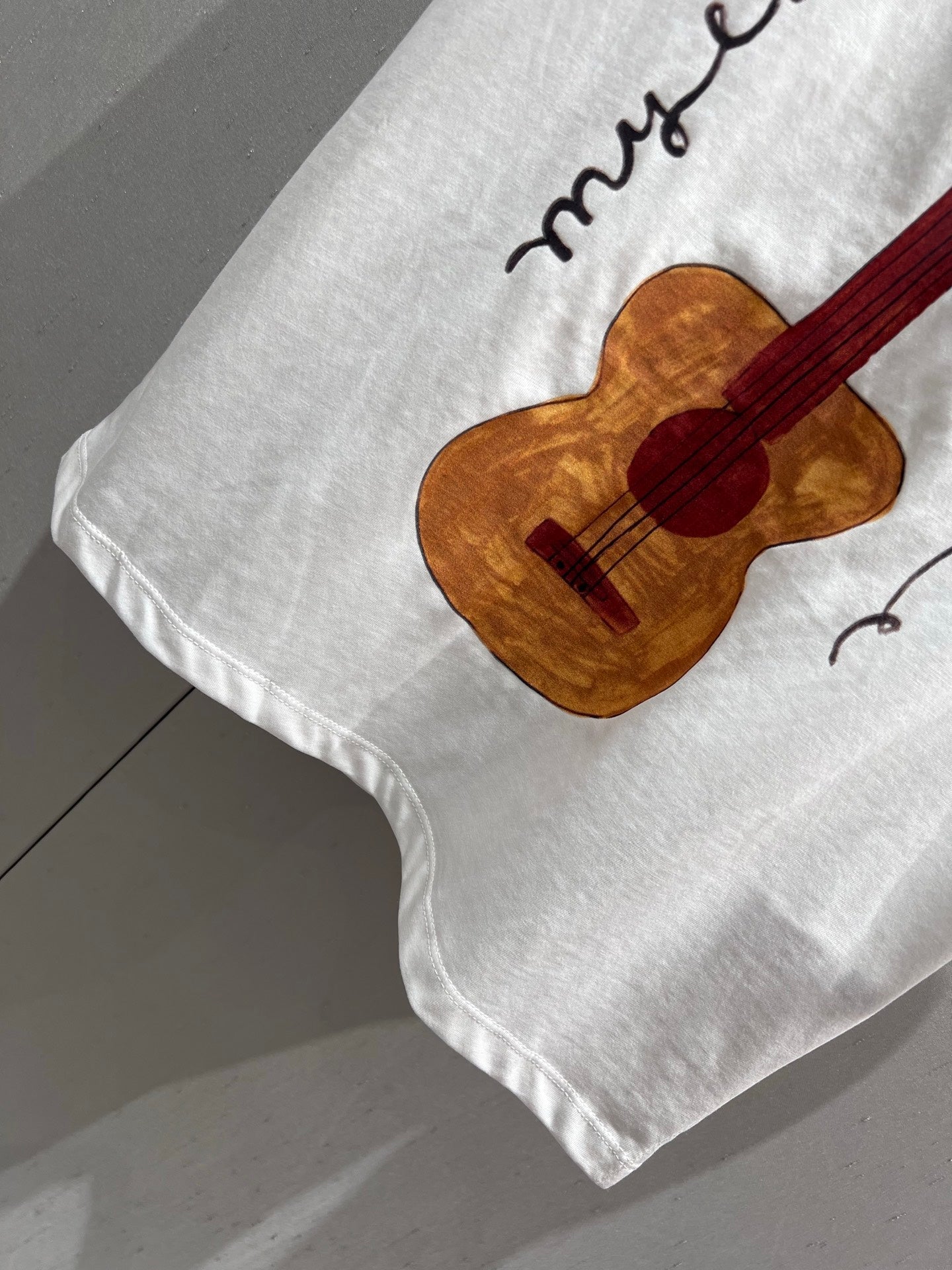 Gucci 25 Cartoon Guitar Print Short-sleeved T-shirt White Cotton 215699