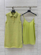 Gucci 25 Hollow Knitted Polo Vest Dress Avocado Green Polyester Fiber