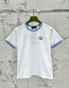 Gucci Embroidered Short Sleeves T-shirt White Blue Cotton