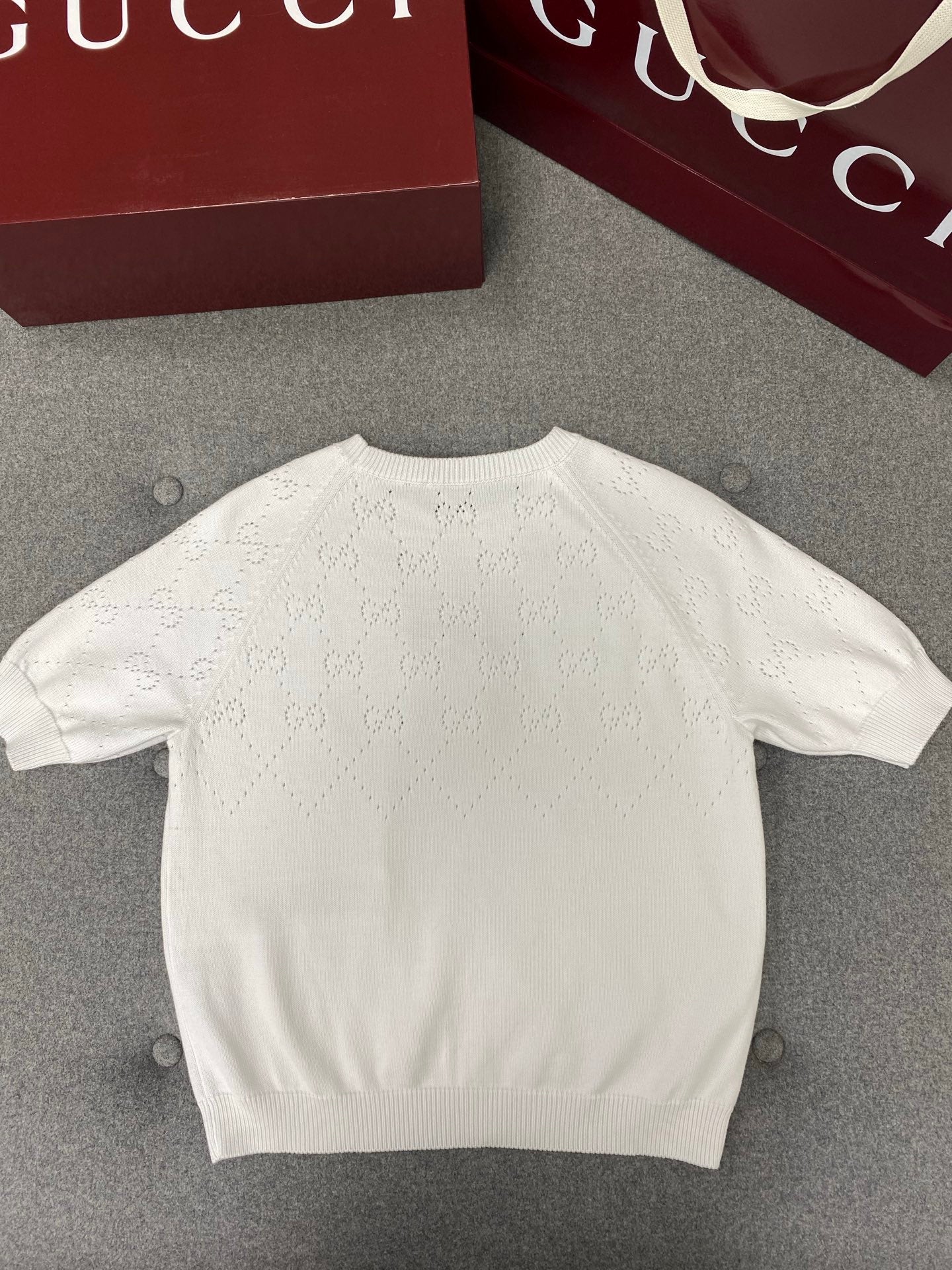 Gucci Round Neck Short Sleeves Top White Cotton