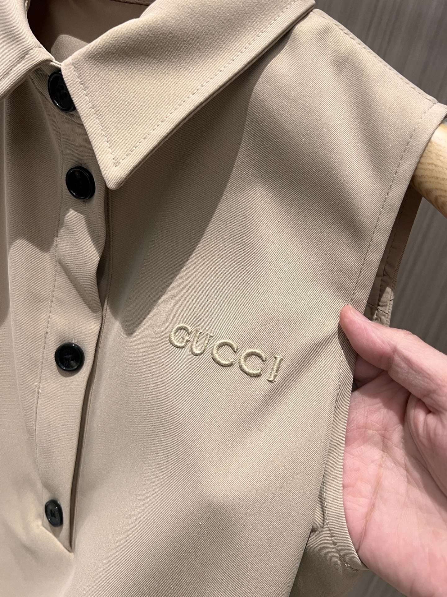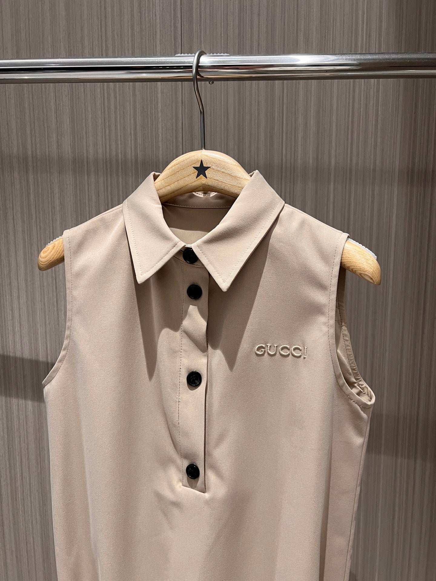 Gucci Sleeveless Vest Dress Beige Polyester Fiber