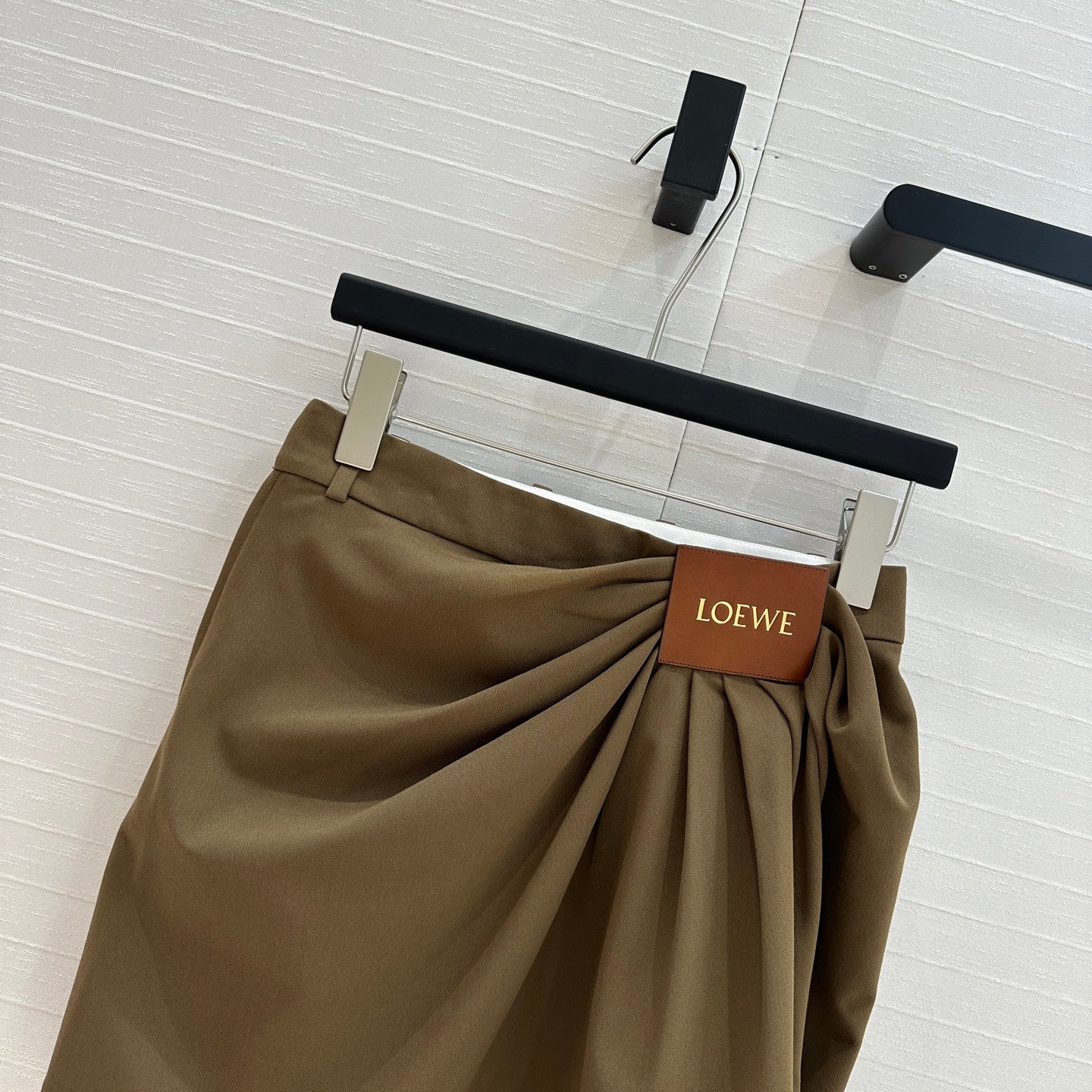 Loewe 25 Draped Skirt Khaki Brown Polyester Fiber